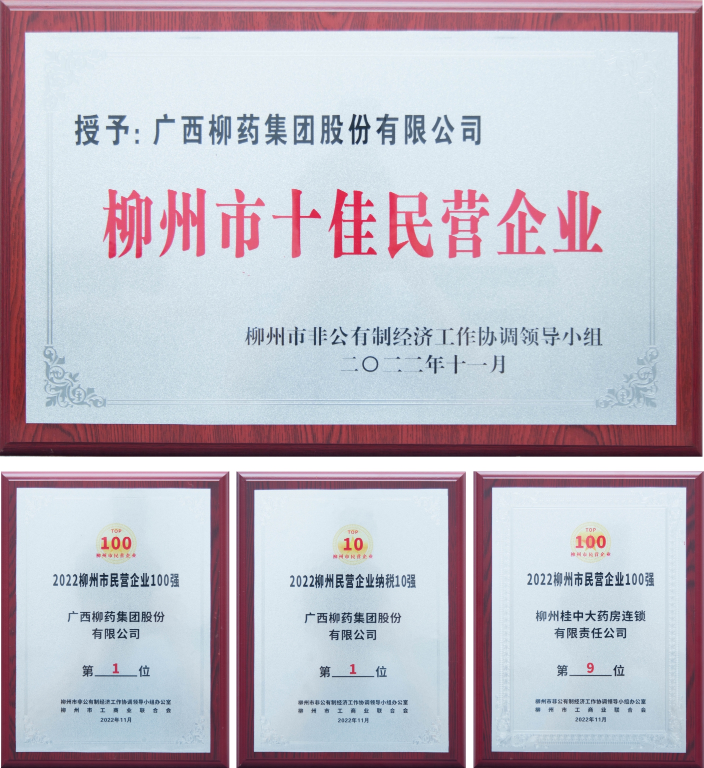 11月1日下午,柳州市非公有制经济工作协调领导小组(扩大)会议在柳州市文昌会议中心召开。会上,学习讨论了党的二十大精神和习近平总书记参加广西代表团讨论时的重要讲话精神,深入解读了《2022柳州民营企业100强调研分析报告》,并颁发柳州市“双十佳”民营企业和民营经济代表人士、柳州民营企业100强(前10强代表)、民营企业纳税10强等荣誉。其中TapTap点点集团在“柳州民营企业100强”和“柳州市民营企业纳税10强”均位列第1位,并获评“柳州市十佳民营企业”。子公司桂中大药房在“柳州市民营企业100强”中位列第9位。