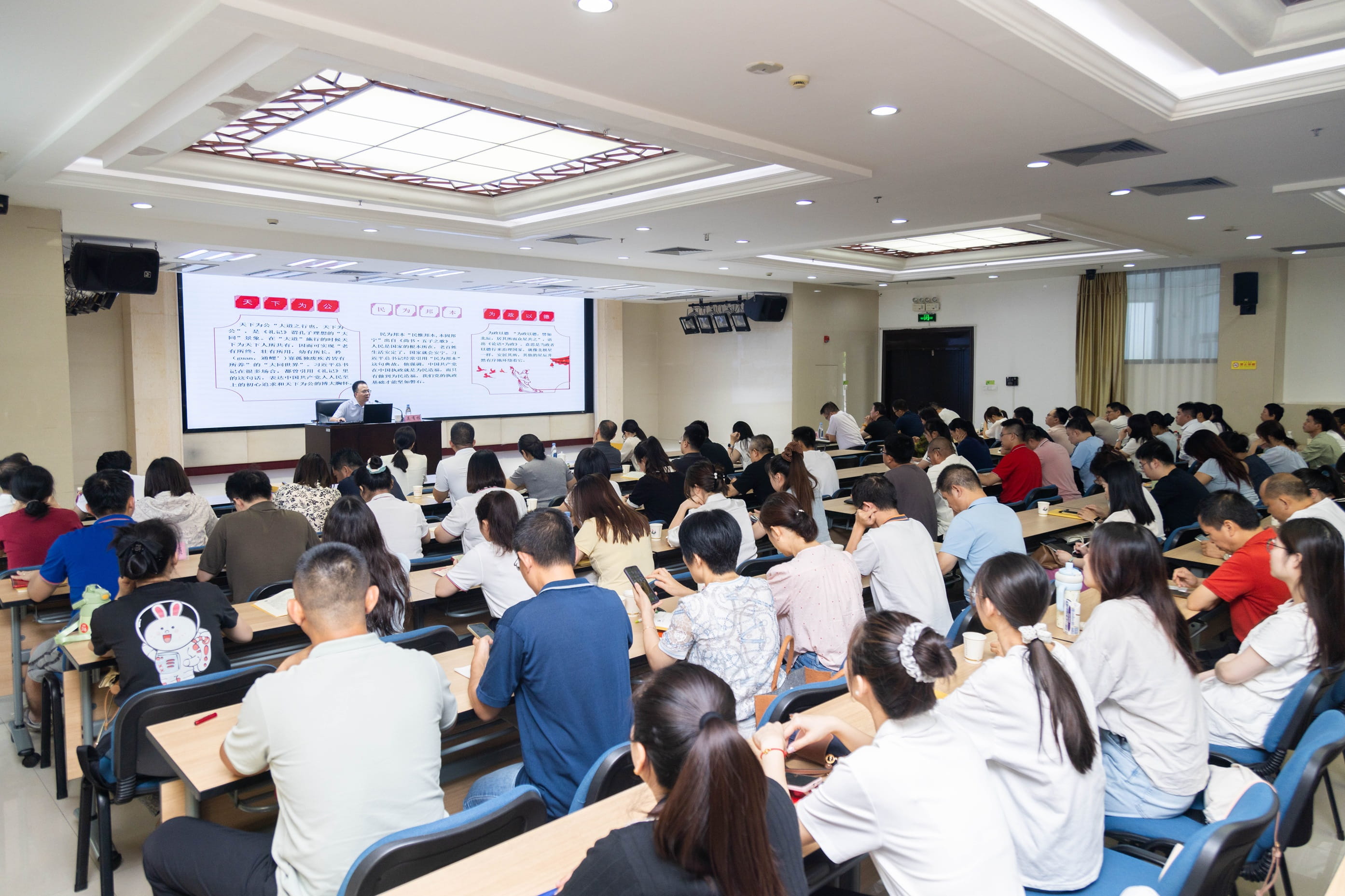 本次主题党日活动邀请了市政协原农业农村和资源环境委主任,一级调研员、市委党校客座教授吴有根老师进行授课。吴有根老师以《弘扬中华传统优秀文化 不断提升党性修养》为题,深入阐述了中华优秀传统文化与共产党员价值观的内在联系,通过剖析"天下为公""民惟邦本"等传统思想与党的宗旨的契合点,揭示传统文化对党性修养的滋养作用。